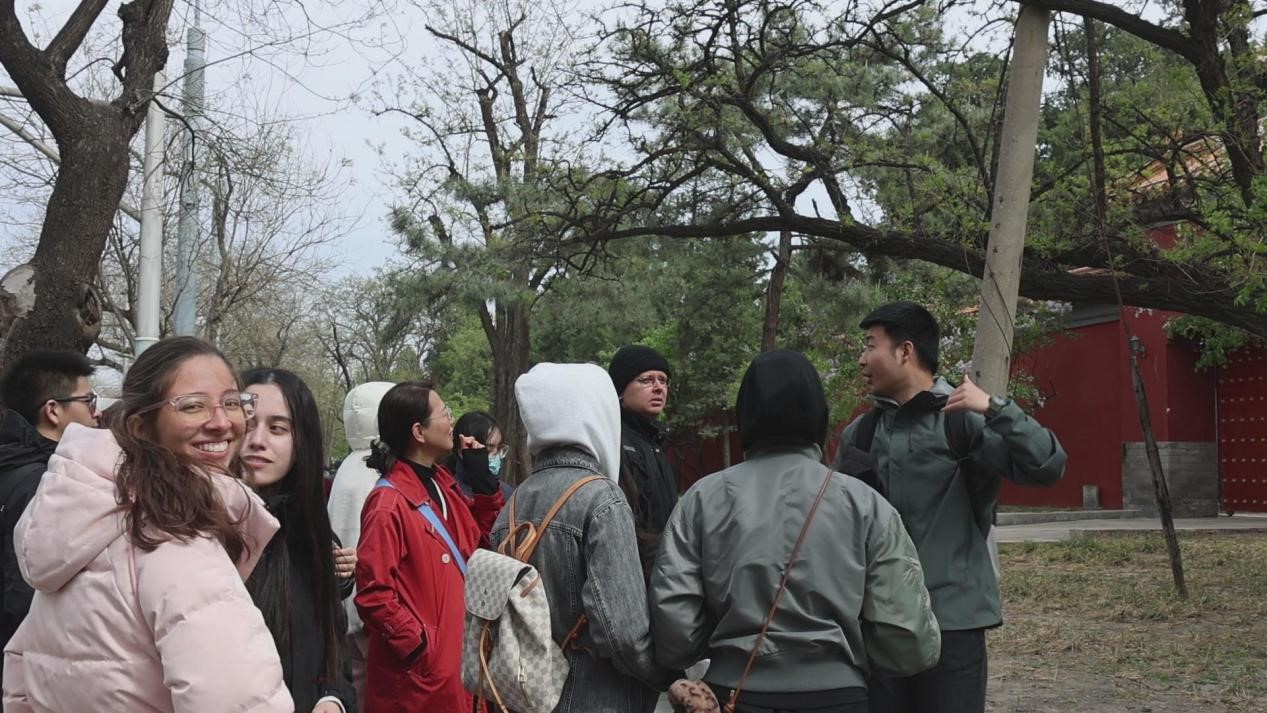 来自哥斯达黎加的何诗怡对中轴线体现的对称和谐秩序、胡同名称来历以及古桥上吉祥兽纹的奥秘很感兴趣。她表示很开心能穿越北京中轴线,听听老北京的故事,看看中国百姓的日常生活。来自意大利的珠利亚很开心可以和老师、助教一起来走中轴线,了解到更多中轴线的故事。来自印度尼西亚的唐凯贤表示,通过亲自走访钟鼓楼、万宁桥、景山等遗产点,体验到了北京中轴线和北京古代都城规划的秩序之美,整个穿越之旅充实而有趣。
