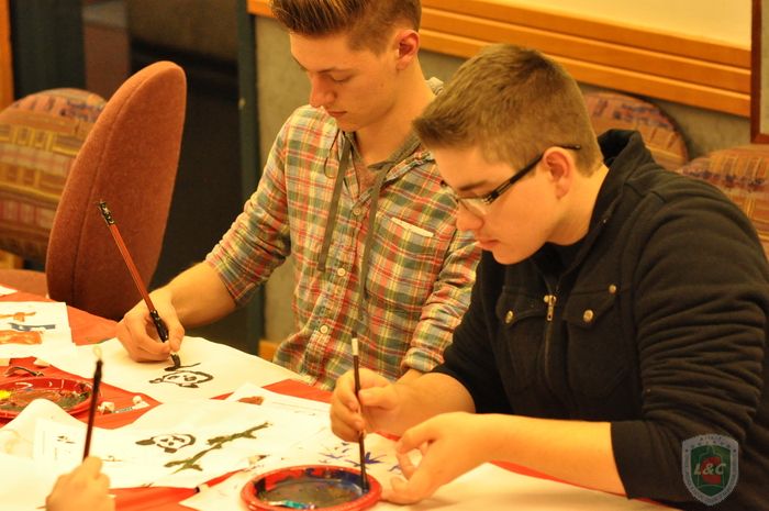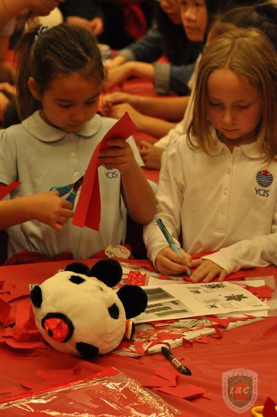 带着热情和好奇,学生们又来到了多间张灯结彩的中国传统文化展览及游戏活动室。展览区展示了艺术家的书法作品、旧金山地区汉语桥杯绘画比赛优胜作品、高中生夏令营活动摄影展及文化用品展。在活动室里,既有孩子们认真地学习剪纸、编中国结和画大熊猫等中国传统文化的体验活动,也有孩子们兴奋地参与夹乒乓球、投羽毛球及中国特色“投壶”等游戏活动。每个孩子脸上都洋溢着笑容,他们离开时更有惊喜,每个人赢得了一份来自孔院的中国文化小礼物。