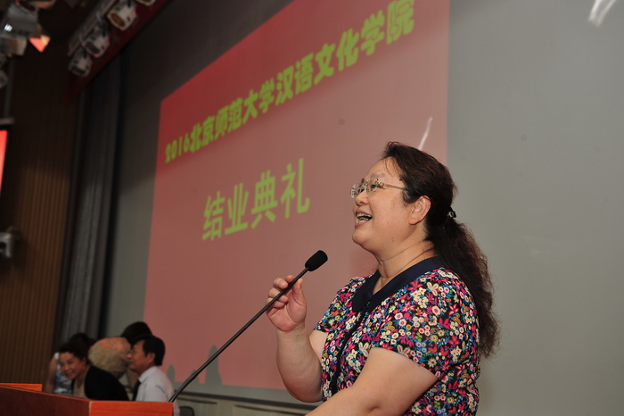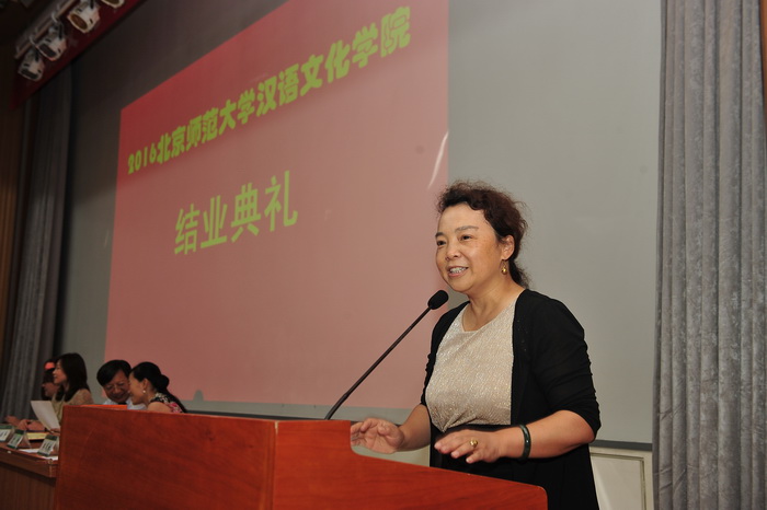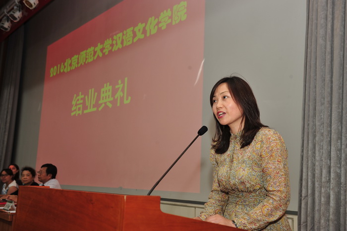 国际交流合作处处长王秀梅向即将毕业的留学生表示祝贺,她希望留学生们利用在师大学习到的知识和技能,服务自己的祖国和社会,积极宣传北京师范大学,也欢迎留学生常回“家”看看。
