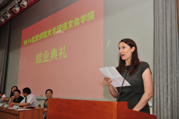 意大利籍学生阿狸代表毕业生做了发言。她代表留学生感谢学院教师的辛勤教导,表达了毕业的喜悦之情。