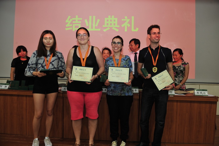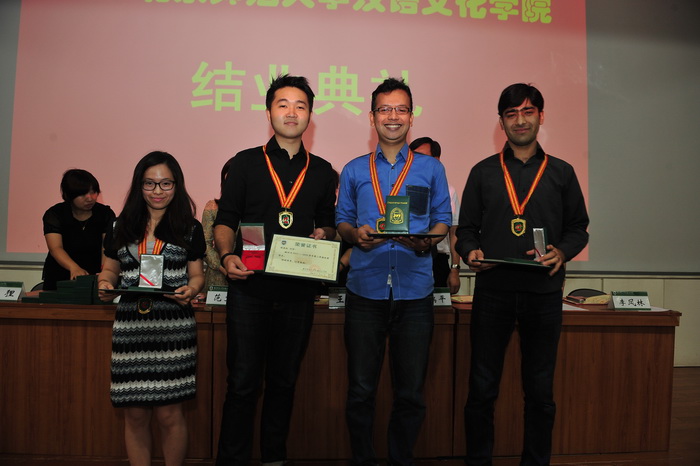 最后,学院领导及嘉宾为获奖学生颁发了优秀留学生奖和“我与中国”征文比赛优秀奖,参加典礼的留学生们同嘉宾合影留念,典礼圆满结束。