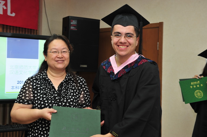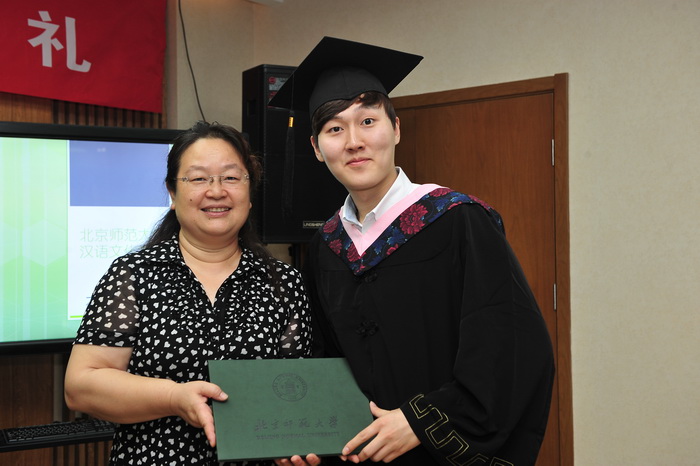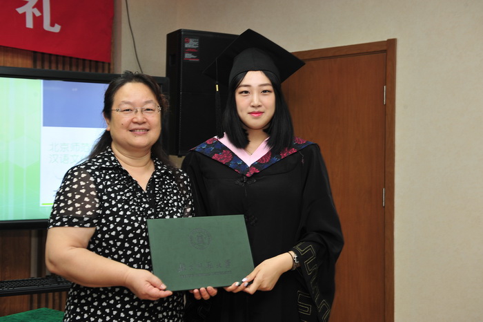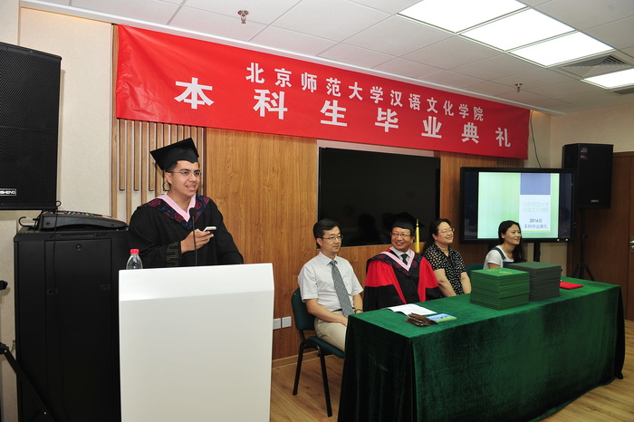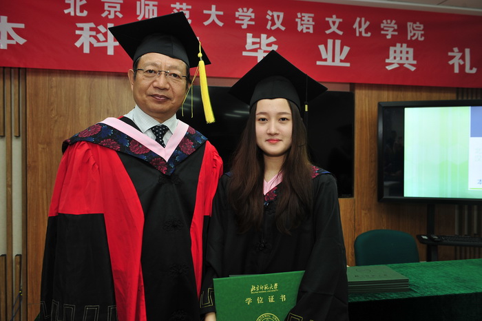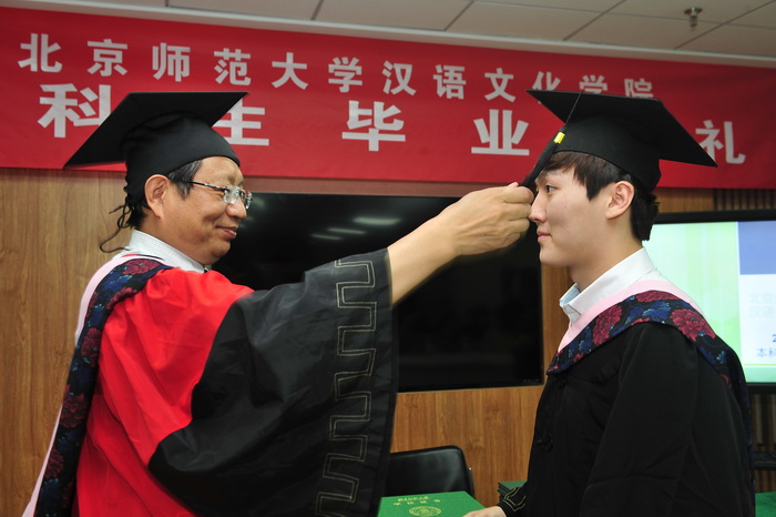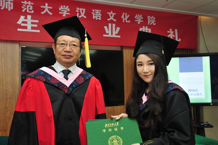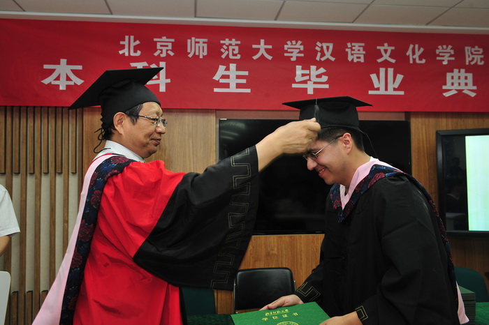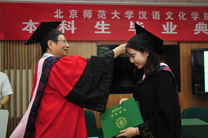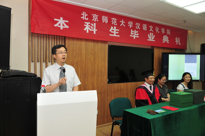 朱瑞平院长向毕业生表示了祝贺,他风趣幽默地同即将告别北师大的留学生回忆了在学校的各种生活,希望他们回国后发挥自己的学识,做好汉语文化的传播。