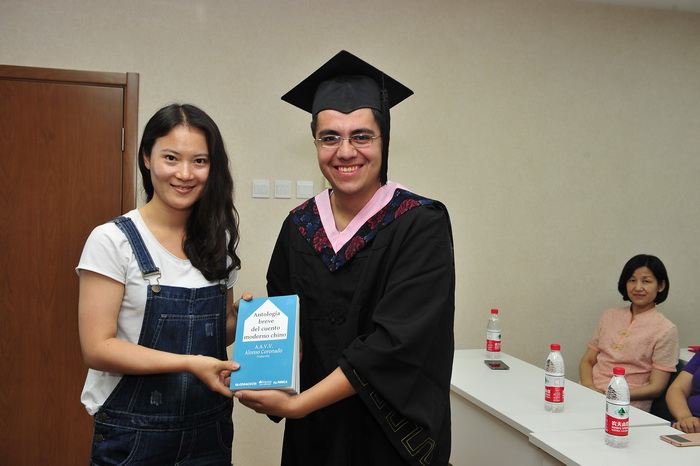 留学生代表陆子龙对学院教师表示了深深感谢,并向学校赠送了他翻译的墨西哥第一部中国现代文学译作《中国现代短篇小说选集》。