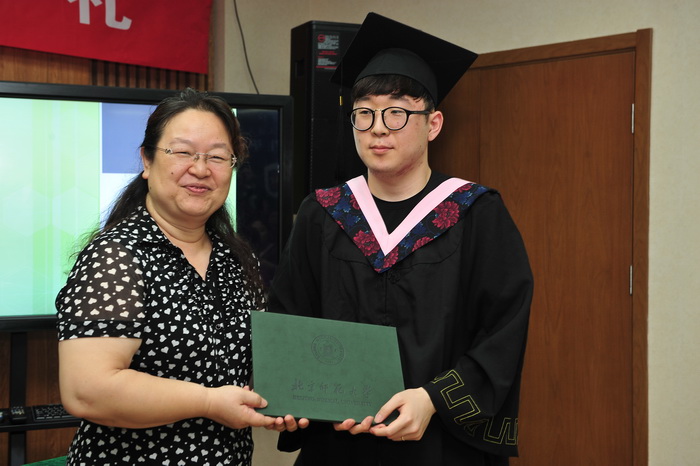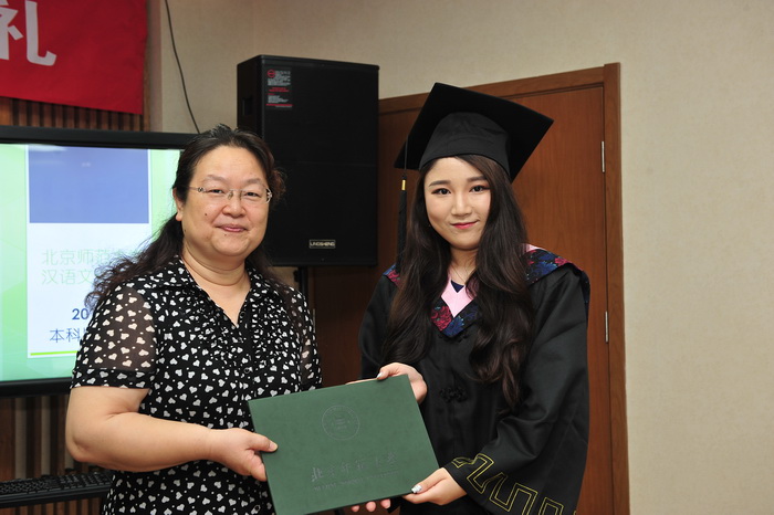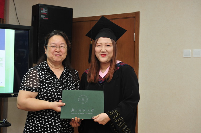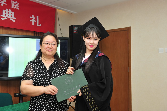 典礼上对获得“北京师范大学本科优秀毕业论文”的陆子龙同学以及获得“北京师范大学优秀毕业生”称号的崔孝琳等5名学生进行了表彰。