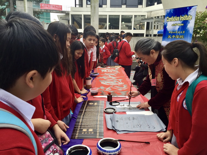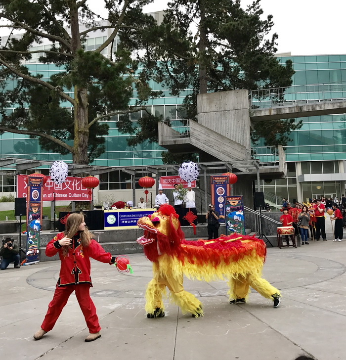 当地时间11月15日,由旧金山州立大学孔子学院举办的欢庆中国文化日活动在旧金山州立大学Malcolm X Plaza隆重举办。旧金山州立大学国际教育协理副校长吴彦伯,中国驻旧金山总领事馆教育参赞杨军出席并致辞。旧金山州立大学OIP副主管Jay C. Ward受邀参加庆祝活动,在讲话中高度赞扬孔子学院举办的文化日活动,起到了链接中美友谊的桥梁作用。明星大厨Martin Yan携成都名厨访问团联合州大孔院组织的包括书法、中医、剪纸、踢毽子、板羽球、兵乓球在内的中国文化特色活动展台火热欢庆中国文化日。