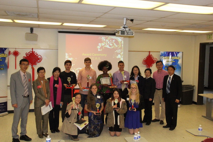 中国驻旧金山总领馆副总领事查立友与领事李韧竹、旧金山联合学区总学监Richard Carranza、旧金山州大协理副校长吴彦伯、参赛学校校长、孔院师生、参赛选手和家长、新闻媒体记者及社区各界热心中文教育的人士600多人出席颁奖典礼。随后,旧金山总领馆为获奖学生及家长提供了招待会,总领事罗林泉等致辞,教育参赞杨军主持了招待会。