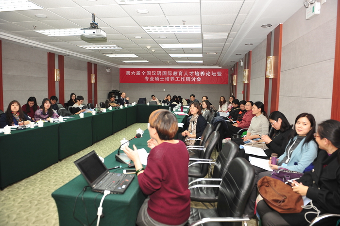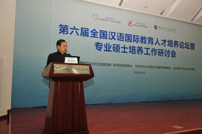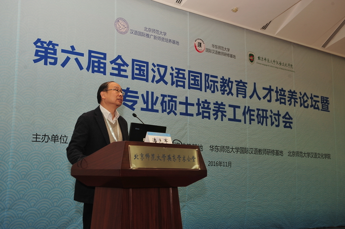 2016年11月12日~13日,由北京师范大学汉语国际推广新师资培养基地、华东师范大学国际汉语教师研修基地、北京师范大学汉语文化学院共同主办的第六届全国汉语国际教育人才培养论坛暨专业硕士培养工作研讨会在我校英东学术会堂举行。来自北京大学、复旦大学、北京语言大学、中国人民大学、华东师范大学等40所国内外高校的78名专家学者,以及汉语文化学院的30多位教师参加了本次论坛。