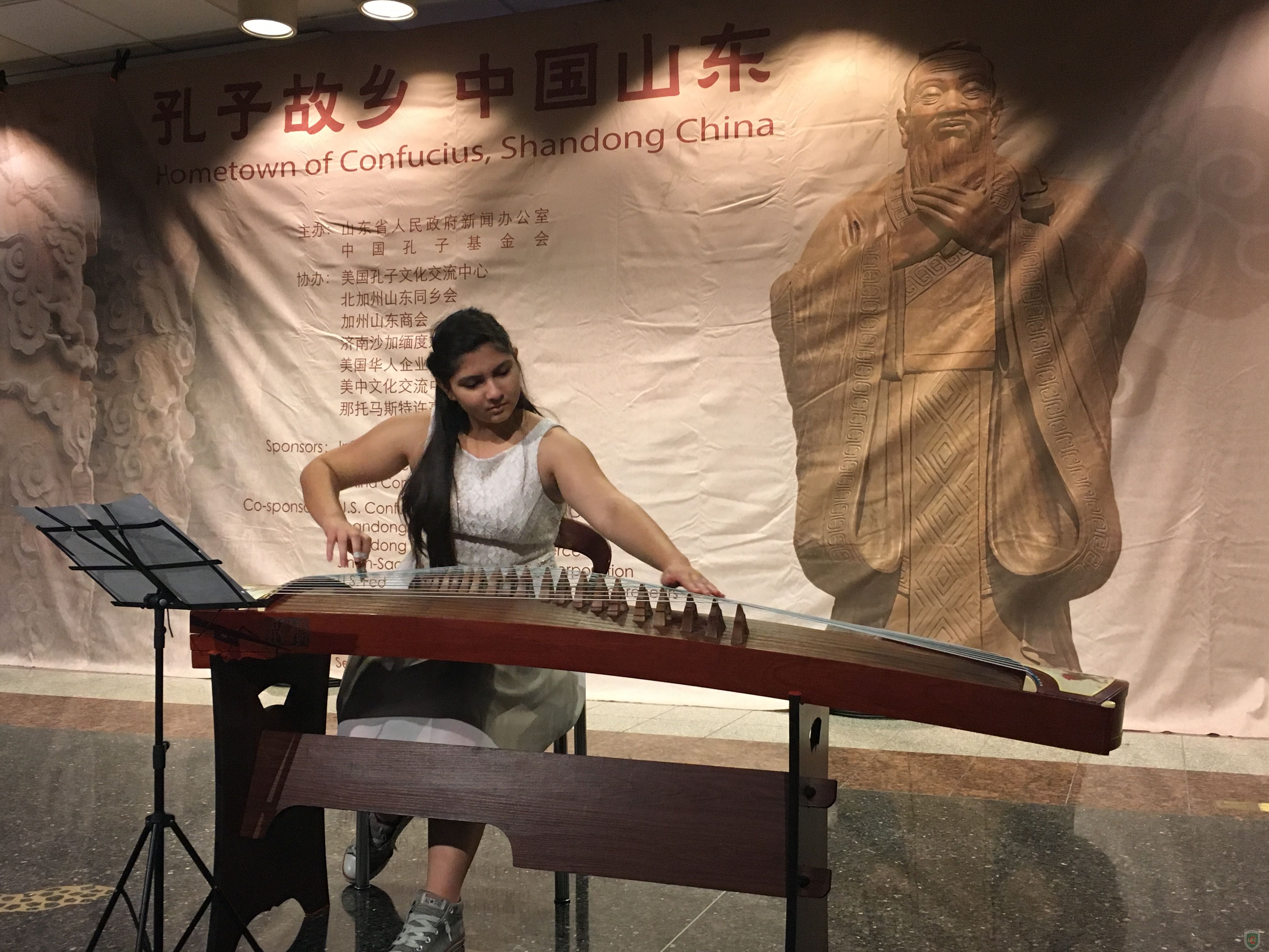 (图2:黄秋月在第一届“加州孔子文化节”表演古筝)