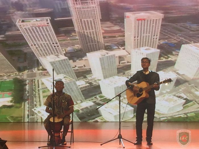 晚会上,我院来自巴林的爱丽舍与来自尼泊尔的苏赞第二个出场,为全场观众带来歌曲《大中国》。他们用自己悠扬而又律动感的歌声将自己对中国的热爱表达得淋漓尽致,引发全场观众大合唱。