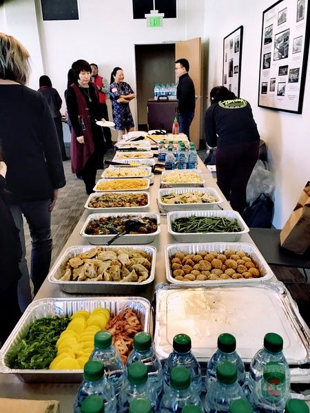 “人顺家和福星照,心想事成鸿运开”。当地时间2月15日中午,旧金山州立大学图书馆内挂起了红灯笼和中国结,贴上了春联和“福”字窗花,洋溢着浓浓的春节气氛。旧金山州立大学孔子学院正在馆内举办“传统中医与养生保健讲座暨迎新春午餐会”。