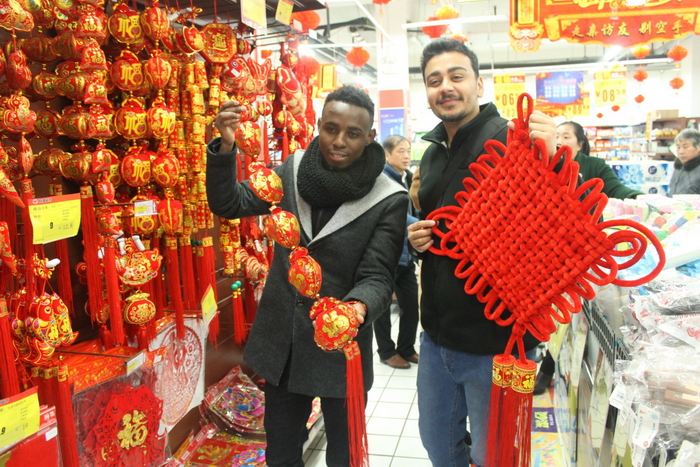 第二天,春节文化的体验正式开始。上午,留学生们分成2-3人的小组,跟随中国家庭一起置办年货,感受中国人采购年货的习俗。下午,同学们与开源集团的员工一起观看集团的新年晚会,晚会各类节目一应俱全,舞蹈、歌曲、小品、相声,喜庆的节日气息感染了在场的每一位同学。晚会上,由两位留学生为大家带来的吉他弹唱《月亮代表我的心》,拉近了留学生与河南人民的距离,获得广泛好评。