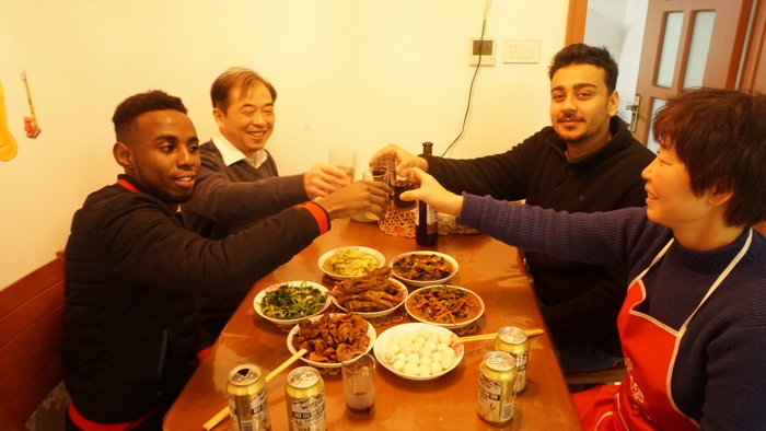 “千门万户曈曈日,总把新桃换旧符”。春节是中国民间最隆重的传统节日,活动丰富多彩,带有浓郁的民族特色。1月27日,即农历腊月三十,留学生们到中国家庭一同欢度除夕夜。学包饺子、准备年夜饭、抢红包、看春晚、串门拜年,跟随中国家庭体验最原汁原味的春节文化。同学们第一次包饺子,学习和面、擀皮儿、捏成饺子的形状,同学们参与兴致颇高,加深了与中国家庭的交流,对春节文化有了更多感性的认识。