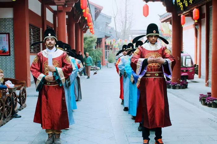 留学生在“河上街”参加《武皇祈福》巡游表演