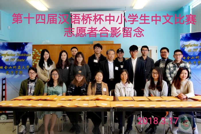 2018年3月17日-18日,由美国旧金山州立大学孔子学院与旧金山联合学区共同主办的第十四届“汉语桥杯中小学生中文比赛”在旧金山马莲拿中学(Marina Middle School)成功举办,有1100多名选手报名参赛。
