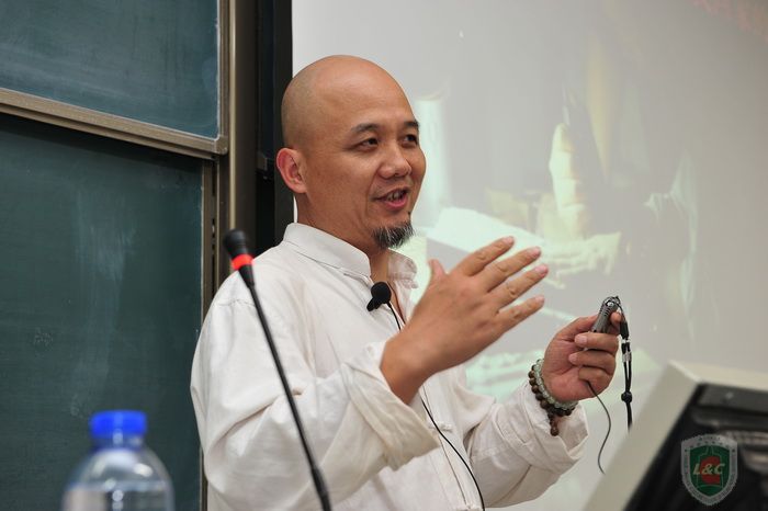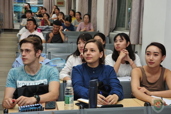 | 汉语文化学院执行院长朱瑞平教授主持讲座 |