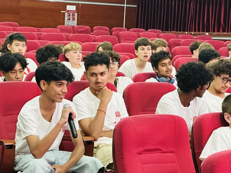 开营仪式的高潮是精彩纷呈的民乐表演。《盛世国乐》的恢弘大气与《战马奔腾》的激昂热烈,深深吸引了在场的英国学子。在老师们的热情鼓励下,学生们跃跃欲试,纷纷上台亲手触摸、学习演奏中国传统乐器。经过简短的现场教学,学员们竟已能合作演绎一小段完整的乐曲,悠扬的旋律与初学者的热情赢得了全场经久不息的热烈掌声。这场开营仪式不仅点燃了学生们探索中国文化的热情,更为他们接下来的深度体验之旅奏响了动人的序曲。