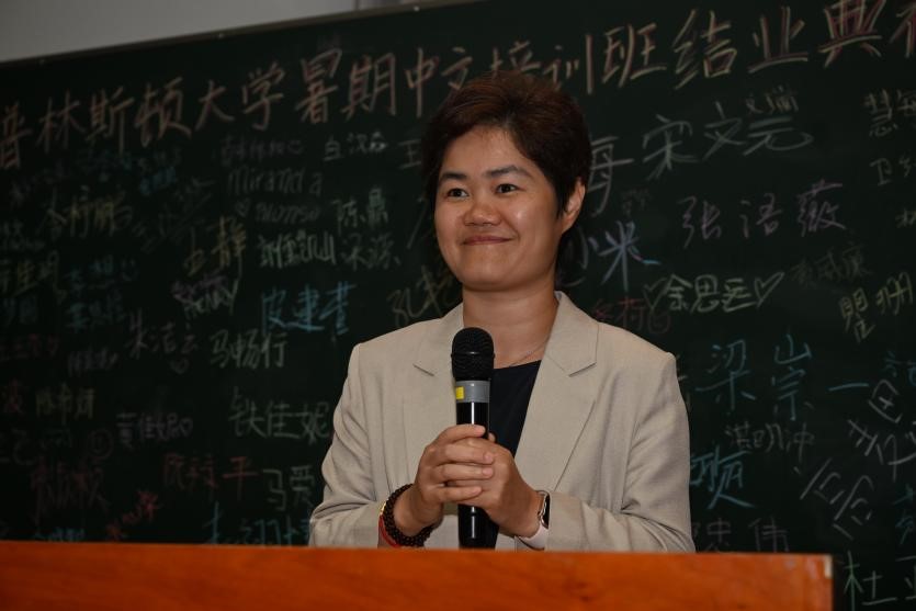 6月22日,普林斯顿暑期北京中文培训班开班仪式在京师学堂京师厅顺利举行。北京师范大学国际交流与合作处处长吴玉军教授首先代表北京师范大学,向参与项目的老师和同学们表示衷心的感谢和热烈的欢迎!吴处长指出,自1993年"普林斯顿在北京"项目启动以来,北师大与普林斯顿大学一起精诚合作,共同推动中美之间的文化交流,已经走过了三十多年的历程,取得了丰硕成果。吴处长期待通过与普林斯顿大学持续共同的努力,“普北班”会办得越来越好,共同绘制一幅跨国友谊的美好画卷。国际中文教育学院院长冯丽萍教授对普北班师生的到来表示热烈欢迎!指出普北项目具有独特而高效的教学、优秀而勤奋的学生、专业而友善的师资,以及独特的学习模式。希望各位参与教学的老师做好心理准备,迎接这个超高强度、也是超多收获的强化项目。同时对同学们提出期望,指出同学们来到中国不仅是学习中文,也是在进行全方位的文化体验和人文交流。普北班负责主任王静教授首先对北京师范大学国际交流与合作处和国际中文教育学院和的精心安排,及普林斯顿大学东亚研究系、国际项目办公室和普北班董事会的坚定支持表示衷心感谢。王主任提到普北班教学方法中的两个基本原则:纠错原则和准确先于流畅原则,并鼓励同学们用眼睛去观察,用耳朵去聆听,积极与中国的老师和同学们交流,度过一个富有成效和丰富多彩的夏天。最后,海淀区出入境管理局的王警官为同学们做了安全讲座。王警官热情地与各位同学进行互动,生动有趣地讲解了各种安全注意事项,祝同学们顺利地完成在北京的学习生活。
