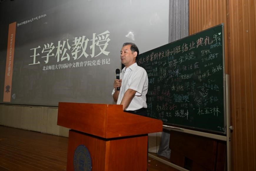 8月15日下午,普北班结业典礼在敬文讲堂拉开帷幕。北京师范大学国际中文教育学院党委书记王学松、普北班项目王静主任、北京师范大学国际交流与合作处司梦老师以及普北班全体师生共同参与此次结业典礼。
