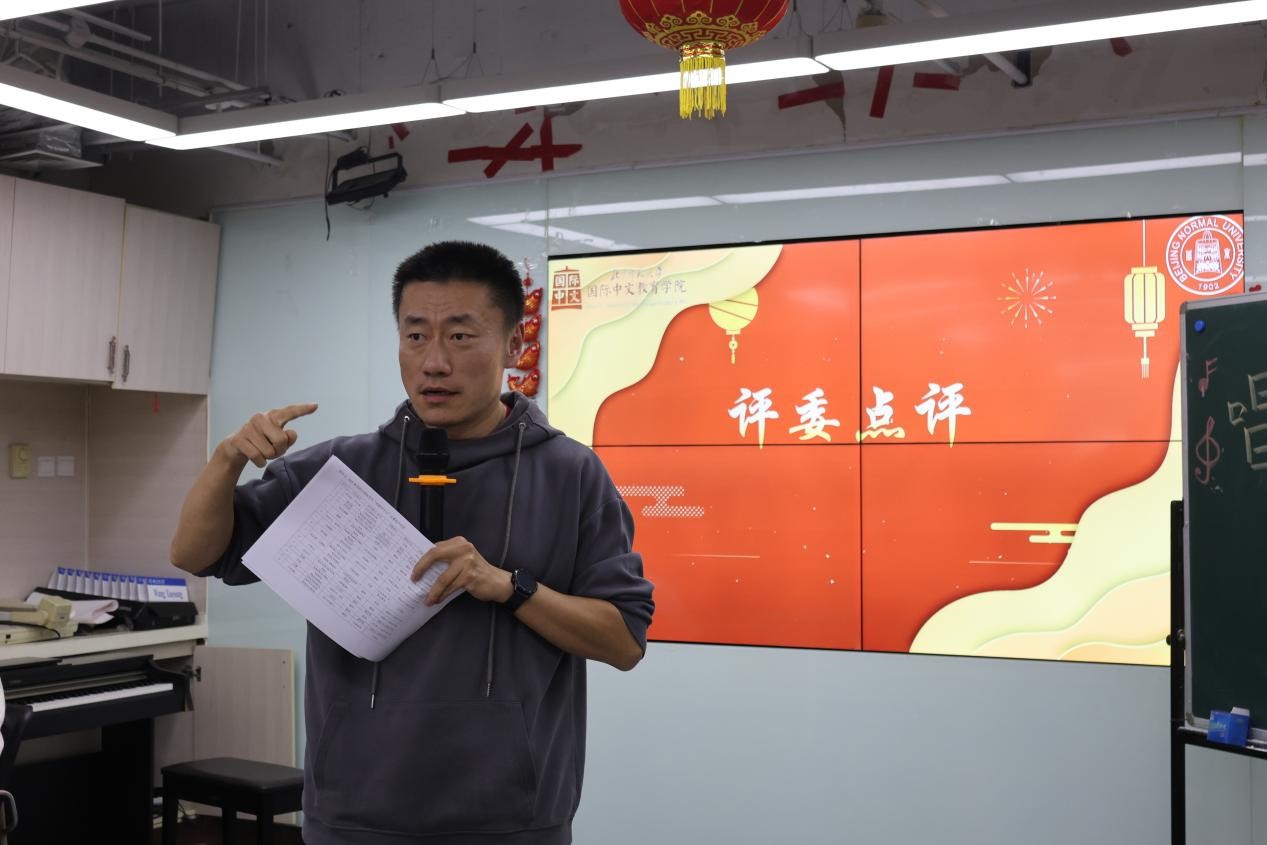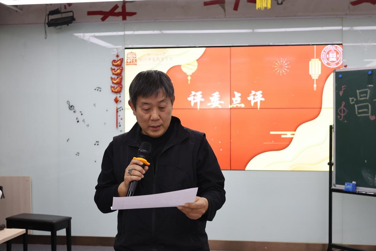 活动伊始,国际中文教育学院卢华岩老师致开幕词。卢老师带来了国际中文教育学院领导老师对此次比赛的祝福,对大家的热情参与表示感谢,同时强调了本活动作为院系老牌活动的意义和价值。评委代表刘一杉老师上台宣布了比赛的评分准则。刘老师强调,评委们期待看到来自不同国家的选手对音乐和歌词关系的巧妙理解以及和观众的精彩互动。