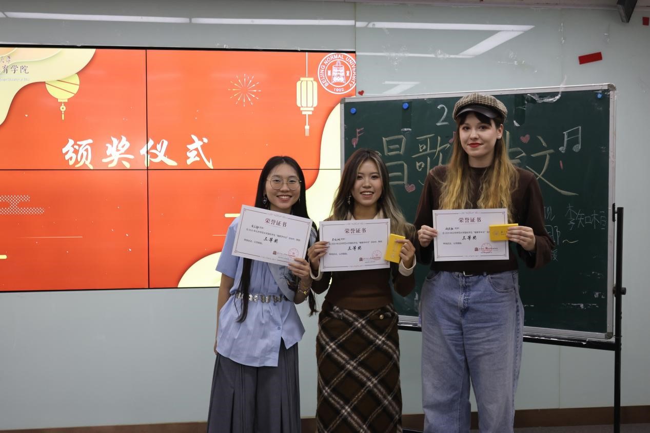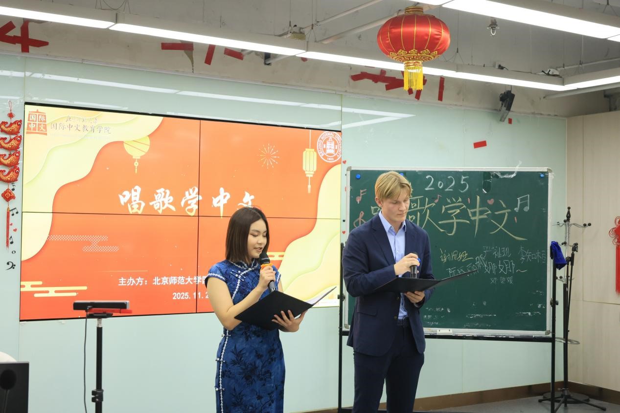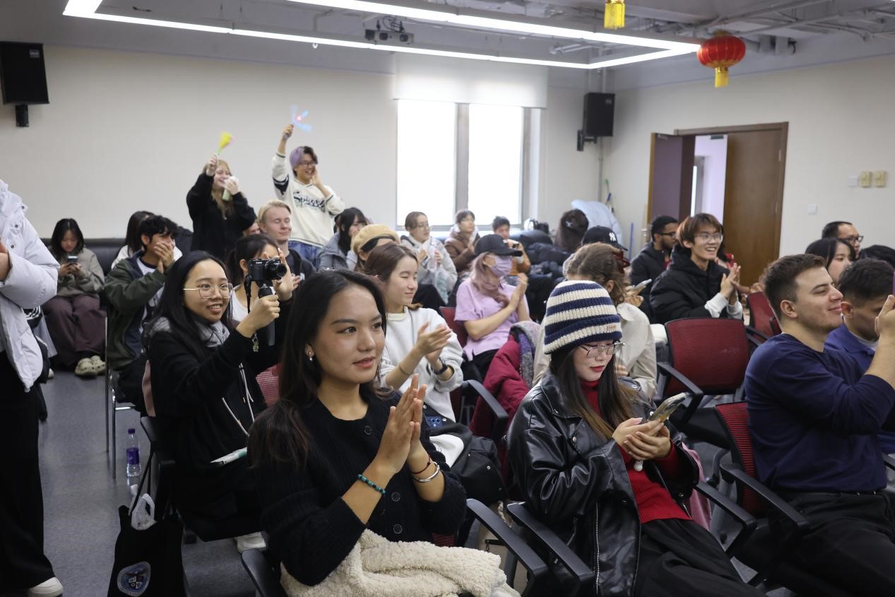 11月28日下午,由国际中文教育学院主办的北京师范大学国际学生“唱歌学中文”比赛在主楼B308圆满举办。来自北师大4个学院9个国家共15名留学生登台现场演唱,近百位国际学生到现场观看,378人参与了线上“最具人气奖”投票。国际交流与合作处留学生办公室教师刘欣雨出席本次活动,刘一杉、卢华岩、李涣、彭金玉、徐棠等几位老师担任本次比赛评委。来自越南的阮玄英和来自美国的和道担任主持人。