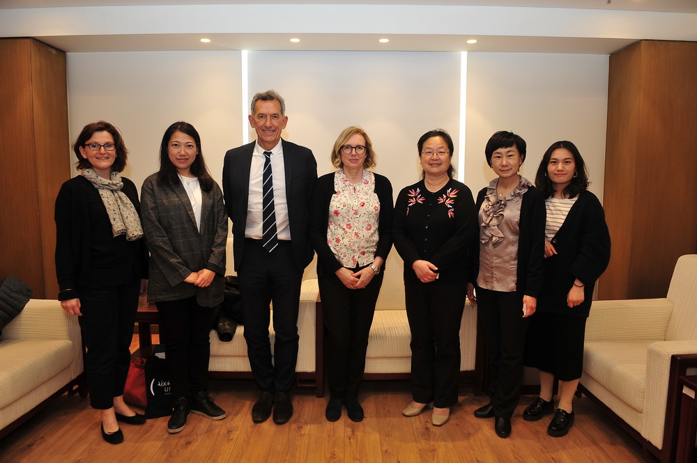2019年4月3日下午法国马赛大学来访,汉语文化学院总支书记李凤林,副院长李炜东、汝淑媛接待来访的客人。