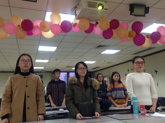 岁末年初,在入学的第一个学期即将结束之际,汉语文化学院2015级硕士班全体中外学生齐聚一堂,举办了一场别开生面的总结会,就一学期以来的班级状况、同学们的工作学习进行回顾与交流。